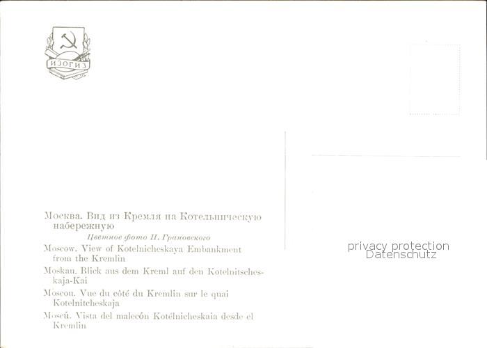 Moskau Moscou Blick aus dem Kreml Kotelnitscheskaja Kai postalisch nicht gelaufen Erhaltung siehe scans
