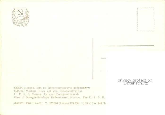 Moskau Moscou Blick Dorogomilow Kai postalisch nicht gelaufen Erhaltung siehe scans