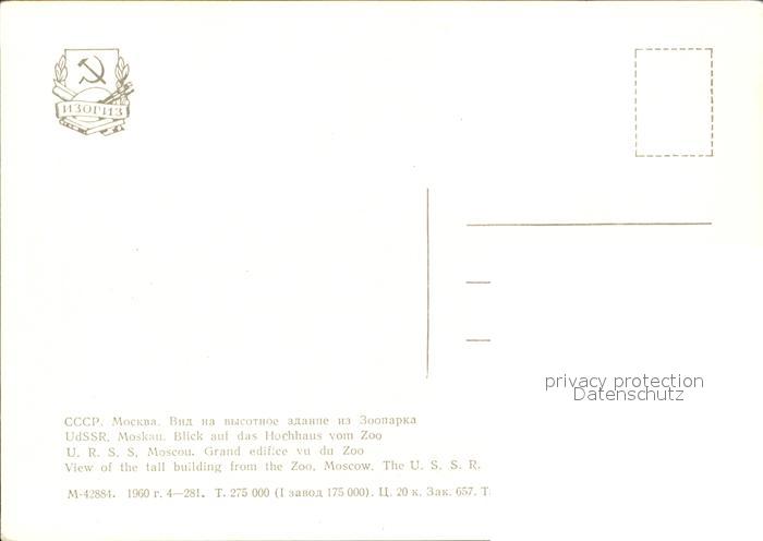 Moskau Moscou Blick Hochhaus Zoo postalisch nicht gelaufen Erhaltung siehe scans