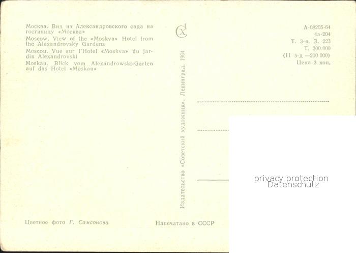 Moskau Moscou Blick vom Alexandrowski Garten Hotel Moskau postalisch nicht gelaufen Erhaltung siehe scans