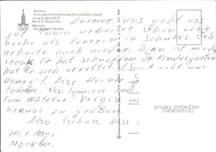 Moskau Moscou Bolschoi Theater postalisch nicht gelaufen Erhaltung siehe scans