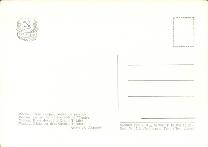 Moskau Moscou Bolschoi Theather mit Vorplatz postalisch nicht gelaufen gute Erhaltung