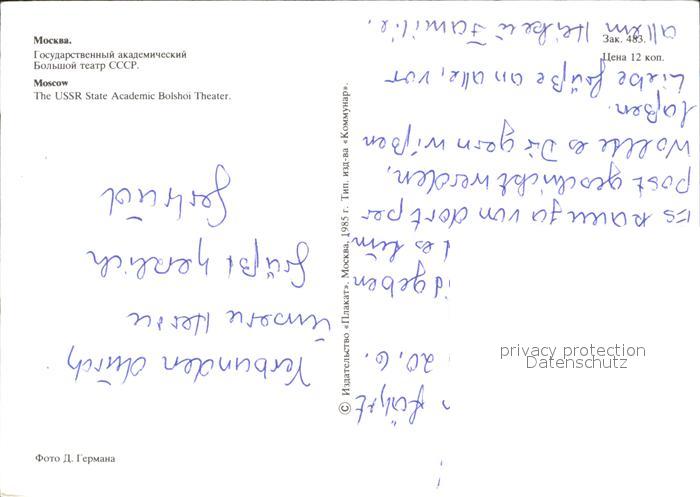Moskau Moscou Bolshoi Theater postalisch nicht gelaufen Erhaltung siehe scans