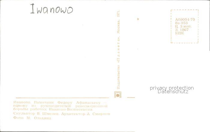 Moskau Moscou Denkmal Iwanowo postalisch nicht gelaufen Erhaltung siehe scans