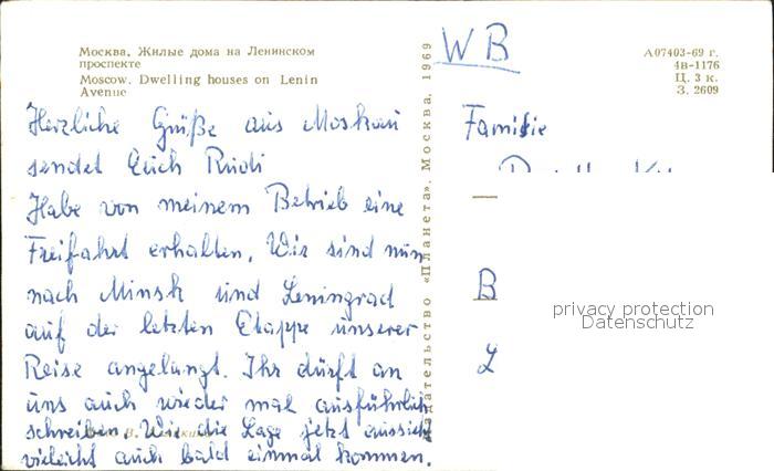 Moskau Moscou Dwelling Houses on Lenin Avenue postalisch nicht gelaufen Erhaltung siehe scans