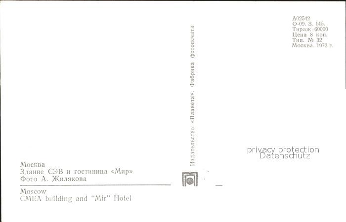 Moskau Moscou Fliegeraufnahme Hotel Mir postalisch nicht gelaufen Erhaltung siehe scans