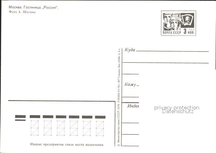 Moskau Moscou Hotel Rossia postalisch nicht gelaufen Erhaltung siehe scans