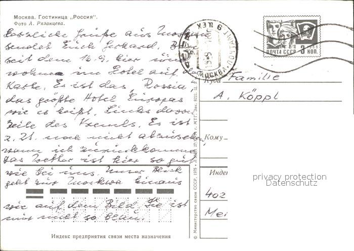 old postcard Moskau Moscou Hotel Rossia postalisch gelaufen Erhaltung siehe scans