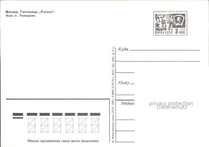Moskau Moscou Hotel Rossija postalisch nicht gelaufen Ganzsache (eingedruckte Briefmarke) Erhaltung siehe scans
