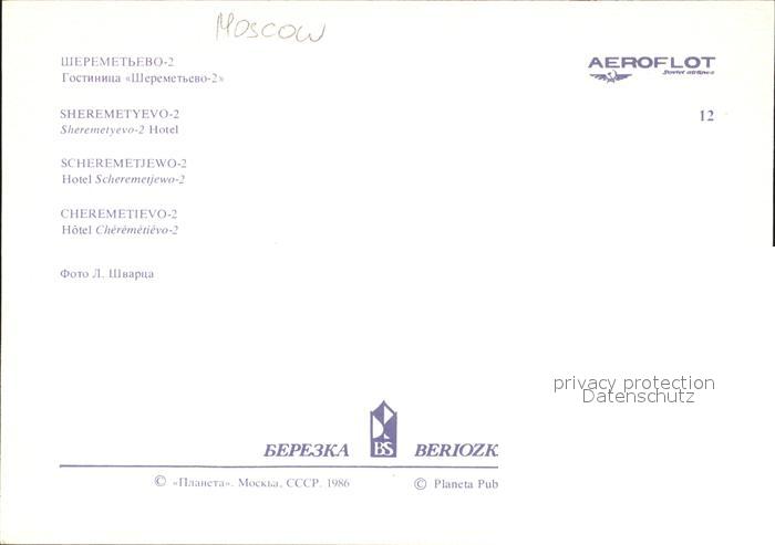 Moskau Moscou Hotel Scheremetievo postalisch nicht gelaufen Erhaltung siehe scans