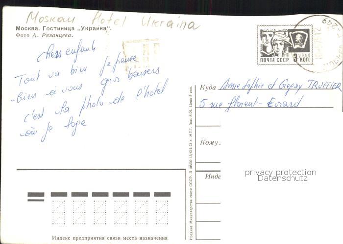 old postcard Moskau Moscou Hotel Ukraina postalisch gelaufen Erhaltung siehe scans