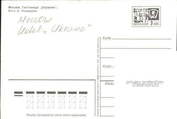Moskau Moscou Hotel Ukraine postalisch nicht gelaufen Erhaltung siehe scans
