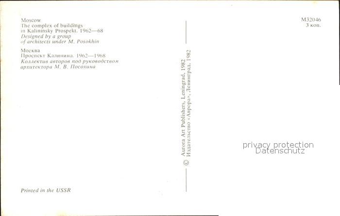 Moskau Moscou Kaliniksky Prospekt postalisch nicht gelaufen Erhaltung siehe scans