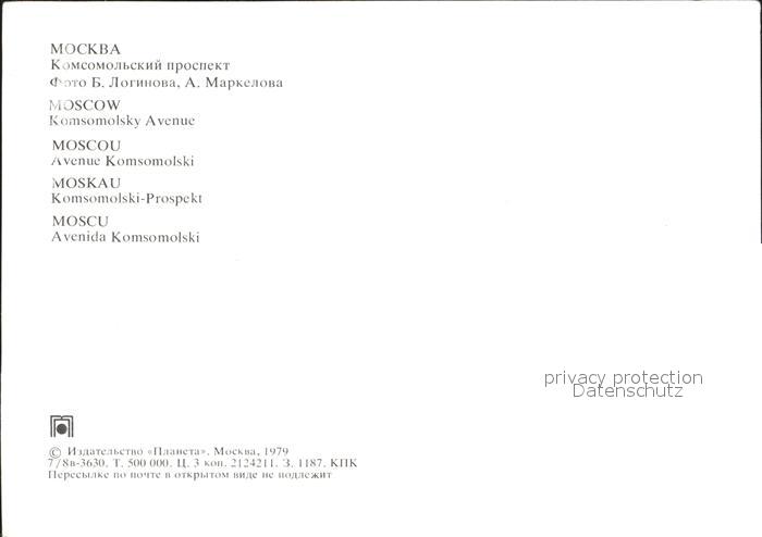 Moskau Moscou Komsomolski Prospekt postalisch nicht gelaufen Erhaltung siehe scans