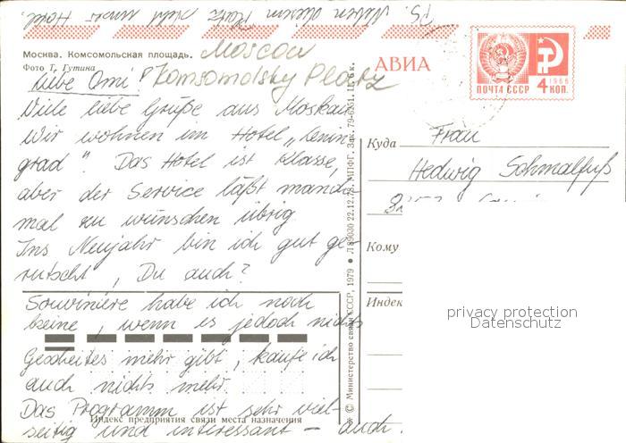 Moskau Moscou Komsomolsky Platz postalisch nicht gelaufen Erhaltung siehe scans