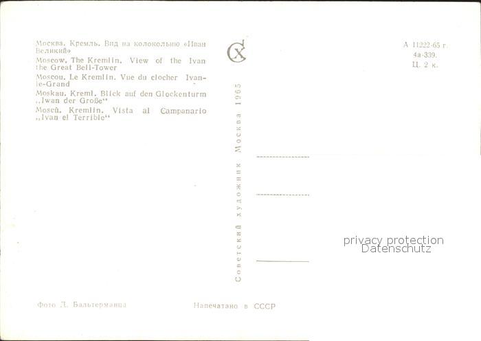 Moskau Moscou Kreml Blick auf Glockenturm postalisch nicht gelaufen Erhaltung siehe scans