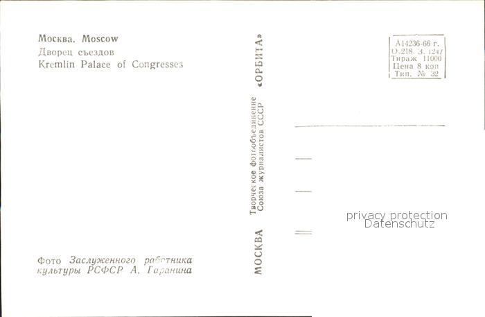 Moskau Moscou Kremlin Palace of Congresses postalisch nicht gelaufen