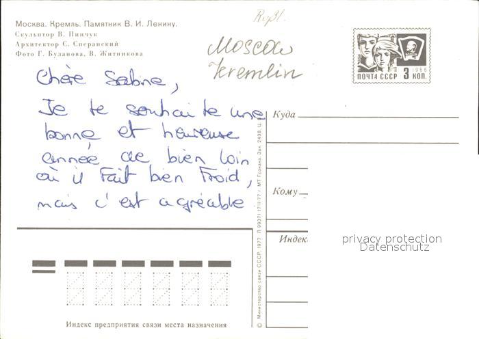 Moskau Moscou Lenindenkmal Kremlin postalisch nicht gelaufen Erhaltung siehe scans
