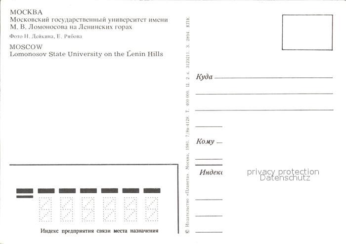 Moskau Moscou Lomonosov State University on the Lenin Hills Night postalisch nicht gelaufen Erhaltung siehe scans