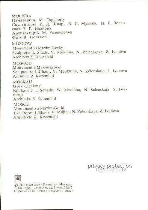 Moskau Moscou Maxim Gorki Monument postalisch nicht gelaufen Erhaltung siehe scans