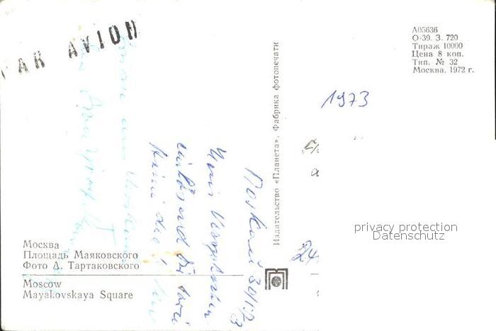 Moskau Moscou Mayakowskaya Platz postalisch nicht gelaufen Erhaltung siehe scans