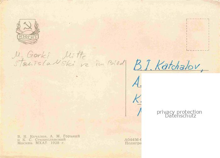 74041988 Moskau Moscou MOSCOW RU Maxim Gorki I.Katschalov S. Stanislavovitsch postalisch nicht gelaufen Erhaltung siehe scans [IrynaD87] KatCode: 11440