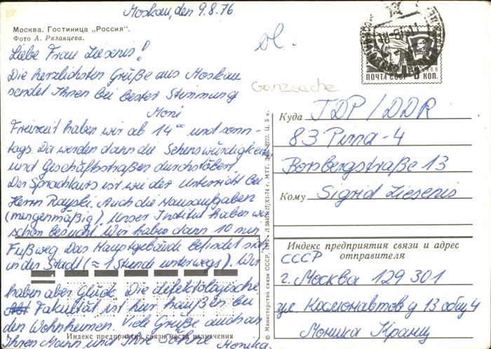 old postcard Moskau Moscou Pocckr postalisch gelaufen Ganzsache (eingedruckte Briefmarke) Erhaltung siehe scans