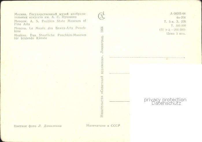 Moskau Moscou Puschkin Museum fuer bildende Kuenste postalisch nicht gelaufen Erhaltung siehe scans