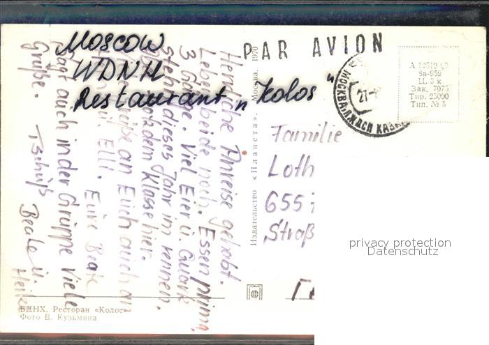 old postcard Moskau Moscou Restaurant Kolos postalisch gelaufen Erhaltung siehe scans