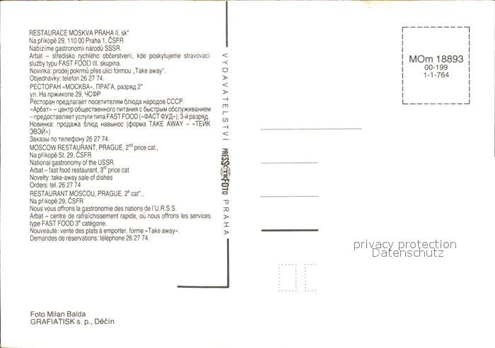 Moskau Moscou Restaurant Moskva Praha postalisch nicht gelaufen Erhaltung siehe scans
