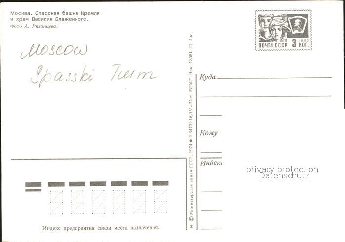 Moskau Moscou Spasski Turm postalisch nicht gelaufen Erhaltung siehe scans