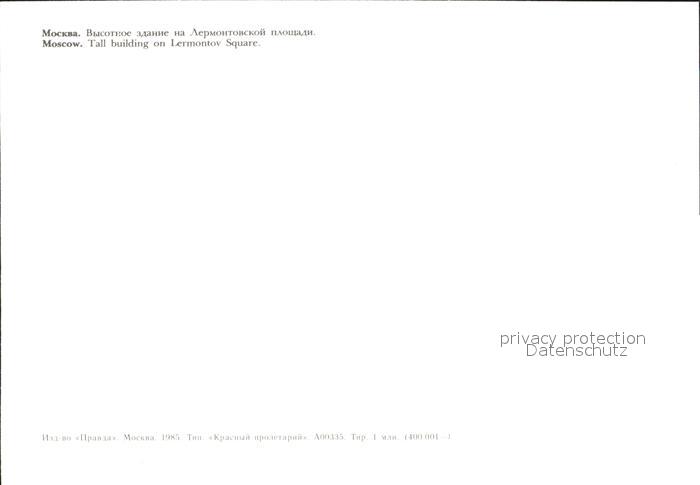 Moskau Moscou Tall building Lermontov Square postalisch nicht gelaufen Erhaltung siehe scans