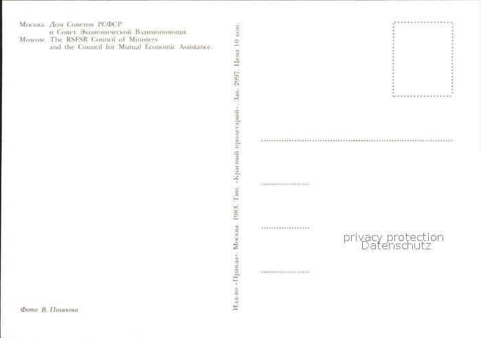 Moskau Moscou The RSFSR Council of Ministers postalisch nicht gelaufen Erhaltung siehe scans