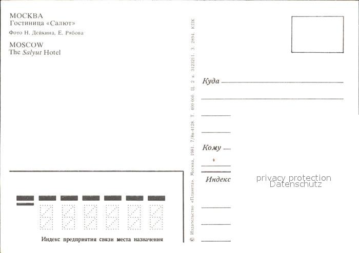 Moskau Moscou The Salyut Hotel postalisch nicht gelaufen Erhaltung siehe scans