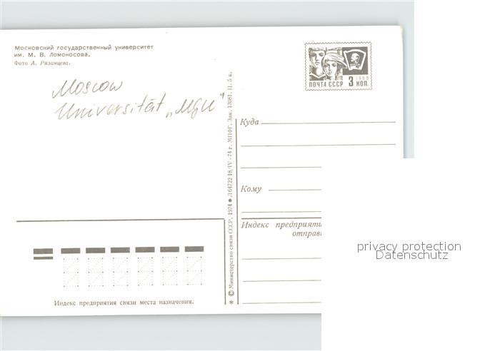 Moskau Moscou Universitaet MGU postalisch nicht gelaufen Erhaltung siehe scans