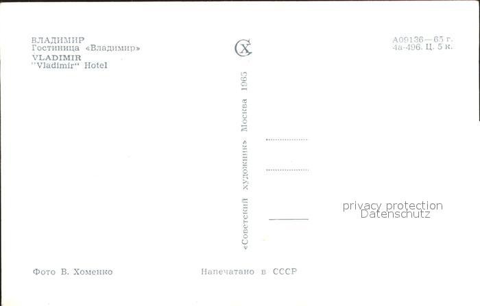 Moskau Moscou Vladimir Hotel postalisch nicht gelaufen Erhaltung siehe scans