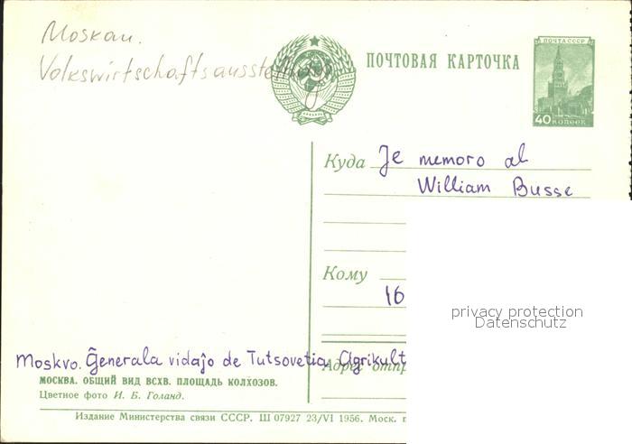 Moskau Moscou Volkswirtschaftsausstellung postalisch nicht gelaufen Erhaltung siehe scans