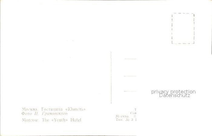Moskau Moscou Youth-Hotel postalisch nicht gelaufen Erhaltung siehe scans