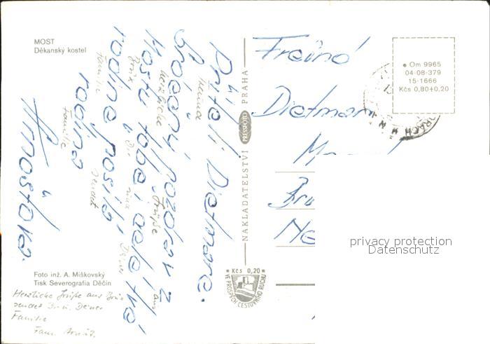 old postcard Most Bruex Czechia Dekansky kostel postalisch gelaufen Erhaltung siehe scans