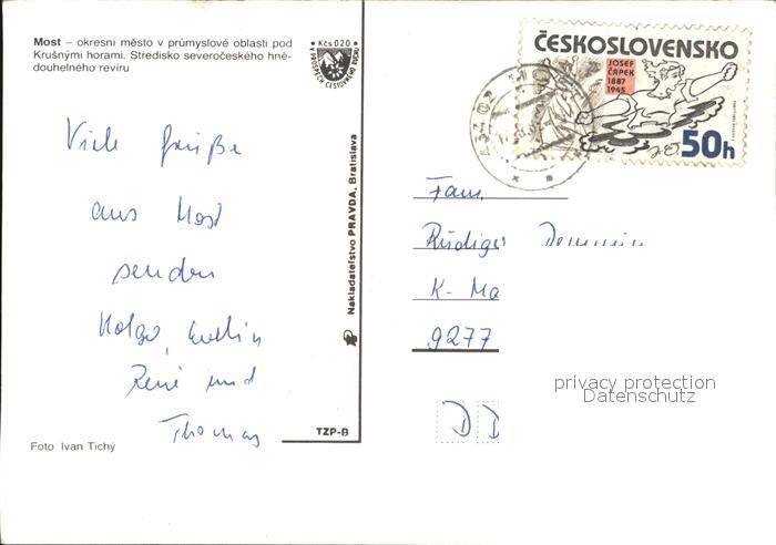 old postcard Most Bruex Czechia okresni mesto v prumyslove oblasti pod Krusnymi horami Stredisko severoceskeho hnedouhelneho reviru postalisch gelaufen Erhaltung siehe scans