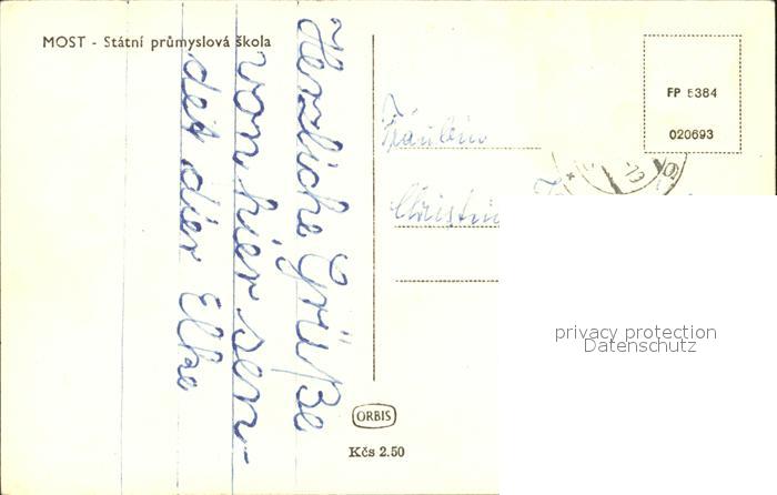 old postcard Most Bruex Czechia Statni prumyslova skola Schule postalisch gelaufen Erhaltung siehe scans