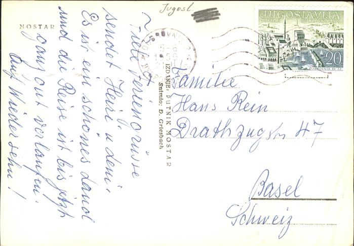 old postcard Mostar Moctap Alte Bruecke Minarett Panorama postalisch gelaufen gute Erhaltung