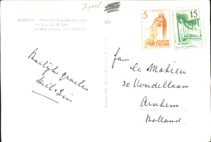 old postcard Mostar Moctap Alte Bruecke ueber Neretva postalisch gelaufen gute Erhaltung