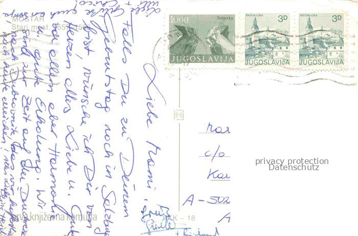 74096698 old postcard Mostar Moctap Bosnia and Herzegovina Alte Bruecke postalisch gelaufen Erhaltung siehe scans [IrynaD87] KatCode: 11080