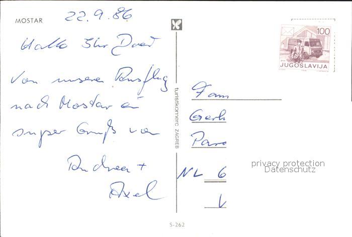 old postcard Mostar Moctap Bruecke Neretva Stadtansichten postalisch gelaufen Erhaltung siehe scans [KathaD79]
