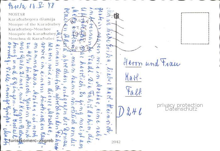 old postcard Mostar Moctap Karadozbeg Moschee postalisch gelaufen Erhaltung siehe scans
