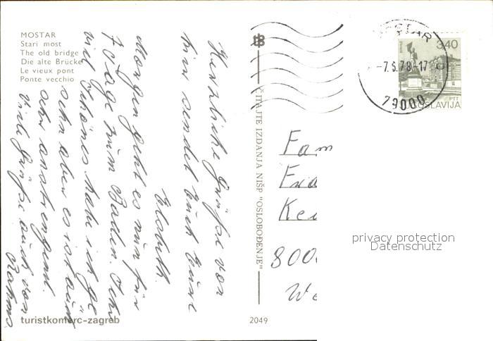 old postcard Mostar Moctap Stari Most Brueckenpartie postalisch gelaufen Erhaltung siehe scans [LiesaD40]