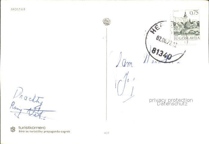 old postcard Mostar Moctap Teilansicht mit Bruecke postalisch gelaufen Erhaltung siehe scans
