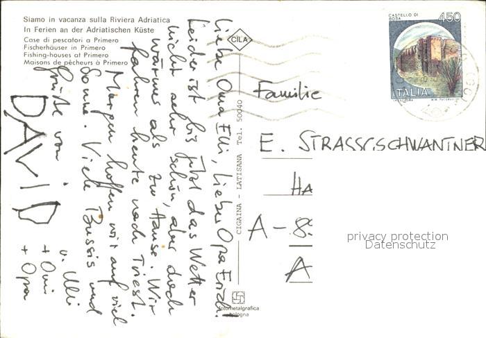 alte Postkarte Motive Fischerhaeuser Primero Adriatischen Kueste Boot postalisch gelaufen Erhaltung siehe scans