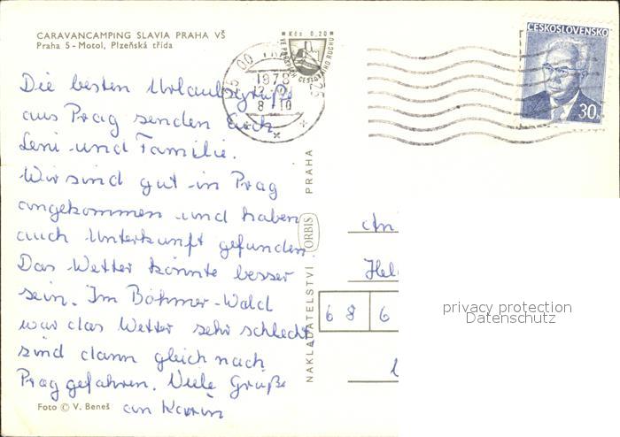 old postcard Motol Praha Caravan Camping postalisch gelaufen